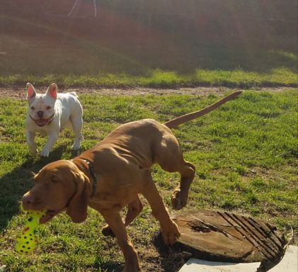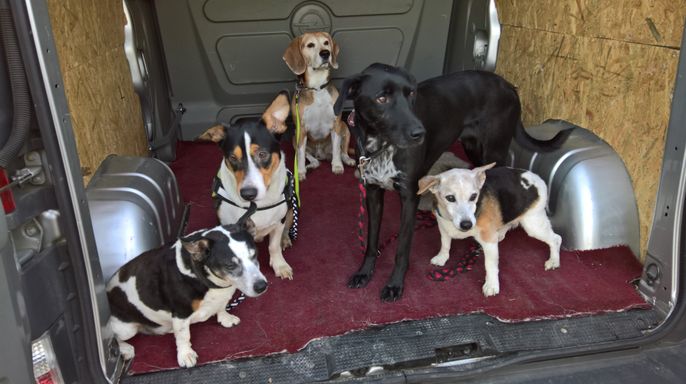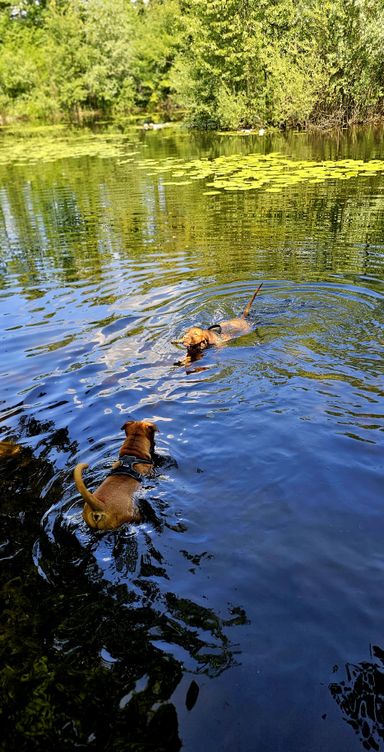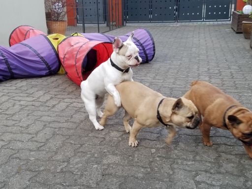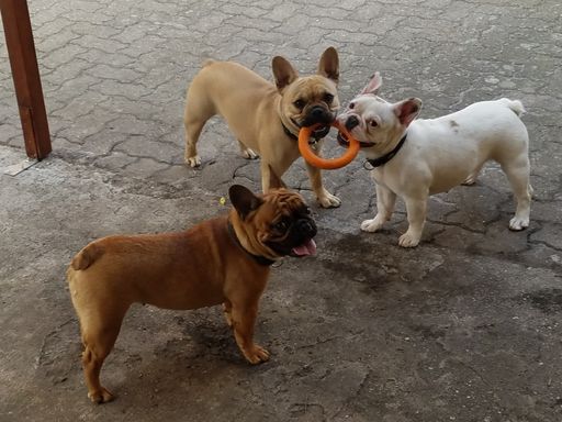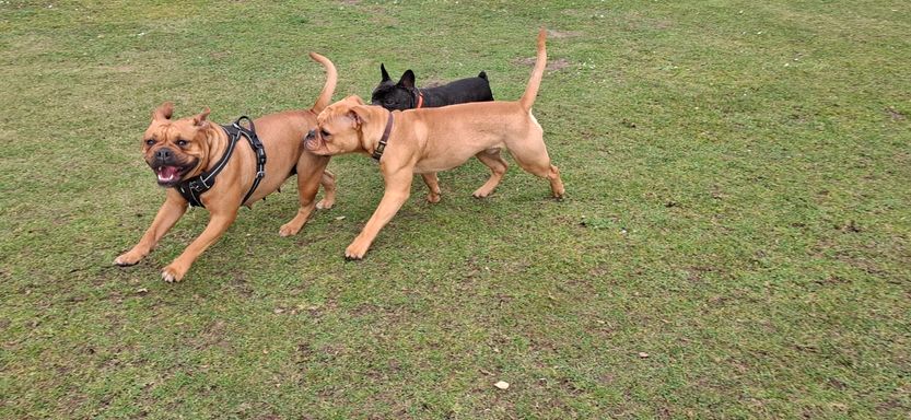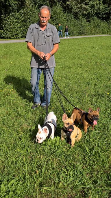 Ich habe vor der Hundezucht längere Zeit Hundebetreuung gemacht, mit täglich bis zu 8 Hunden. Ich bin mit meinem Bus mit allen morgens und nachmittags zu den Wiesen zum Gassi gefahren.