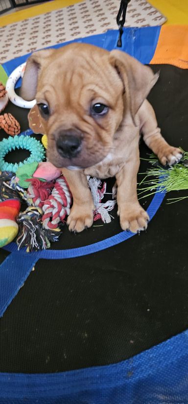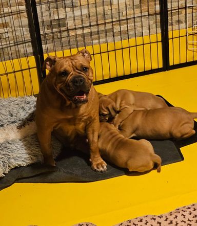 Nelly hat am 2.07. aus der Verpaarung mit Vetbulls Freddy 7 wundervolle kleine Welpen, unsere ersten Conti-Kinder bekommen.